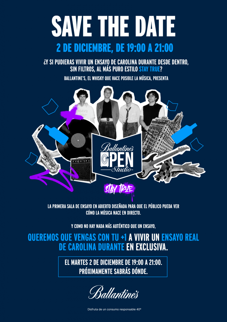 Los interesados en asistir podrán saber cómo acceder al ensayo próximamente a través de las redes sociales de la marca y serán 100 fans mayores de edad los que puedan optar a vivir esta experiencia de primera mano, de hecho serán los 100 primeros en llegar. Además, Ballantine’s seleccionará a cinco de los fans más auténticos para disfrutar de un Meet & Greet exclusivo con Carolina Durante.