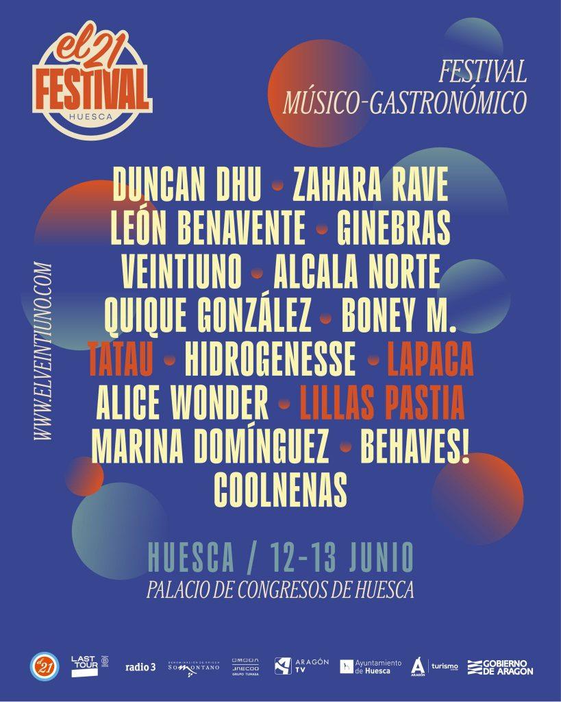 El 21 Festival, que tendrá lugar los días 12 y 13 de junio en el Palacio de Congresos de Huesca, amplia su programación musical con cuatro nuevas incorporaciones que refuerzan su apuesta por la diversidad sonora, la calidad de los y las artistas y el diálogo entre generaciones musicales. Zahara, Boney M., Coolnenas e Hidrogenesse se suman hoy a un cartel que ya era de una calidad pocas veces vista en la ciudad de Huesca y en el territorio aragonés y que completan Alcalá Norte, Behaves!, Duncan Dhu, Ginebras, León Benavente, Marina Dominguez, Quique González y Veintiuno.